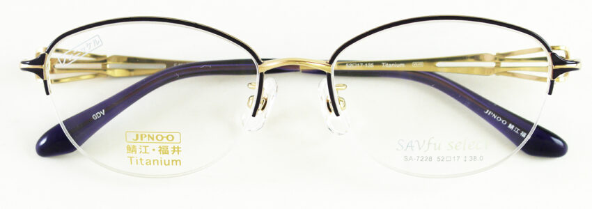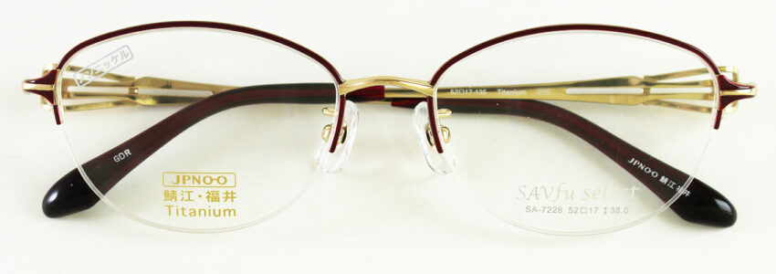SA7228 未分類 2025.09.19 SPEC生産地JPNO-O 鯖江・福井(日本製)サイズ52□17-135 (↕38)素材Titanium(T-β) / NN(ノンニッケル)タイプナイロールカラー・GDR (ゴールド/ダークレッド) ・GDV (ゴールド/ダークバイオレット)・LGGR(ライトゴールド/グリーン) ・TIDV (チタン/ダークバイオレット)